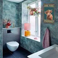🤭Humorous Bathroom Decor: This vintage tin sign features a charming highland cow with the funny text "Are You Pooping?" It's perfect for adding a touch of humor to your bathroom or restroom. Eye-catching and playful, it will bring a smile to everyone who sees it.